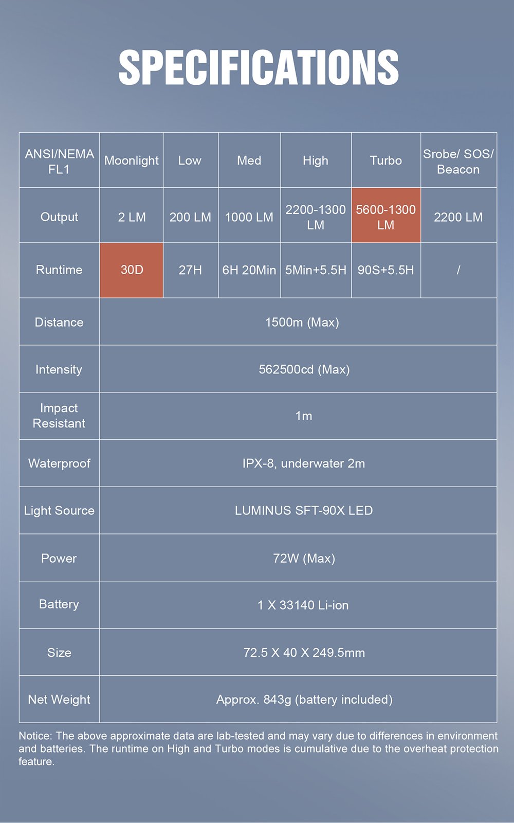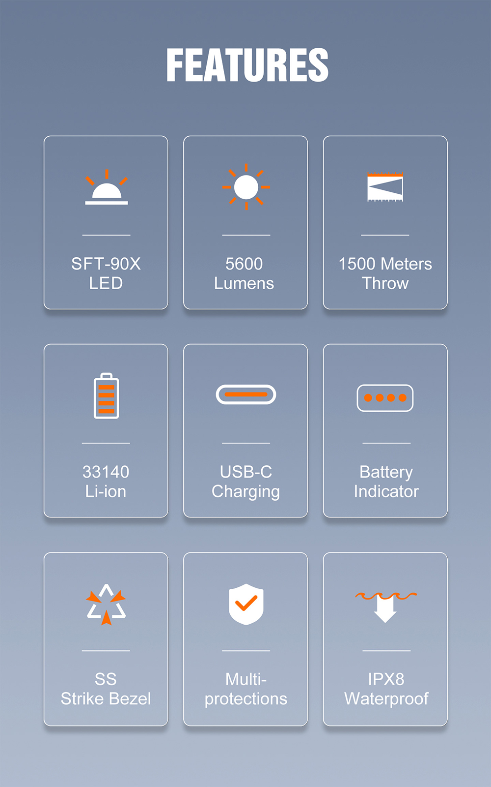 LUMINTOP PK90 SFT-90X 5600lm 1500m 33140 Flashlight