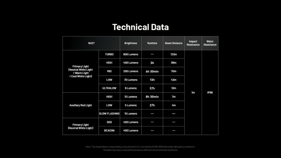 The NU27 is also rated IP66 water-resistant and can withstand impacts of up to 1 meter, making it a reliable companion for everyday tasks, camping, hiking, and more, in any environment.