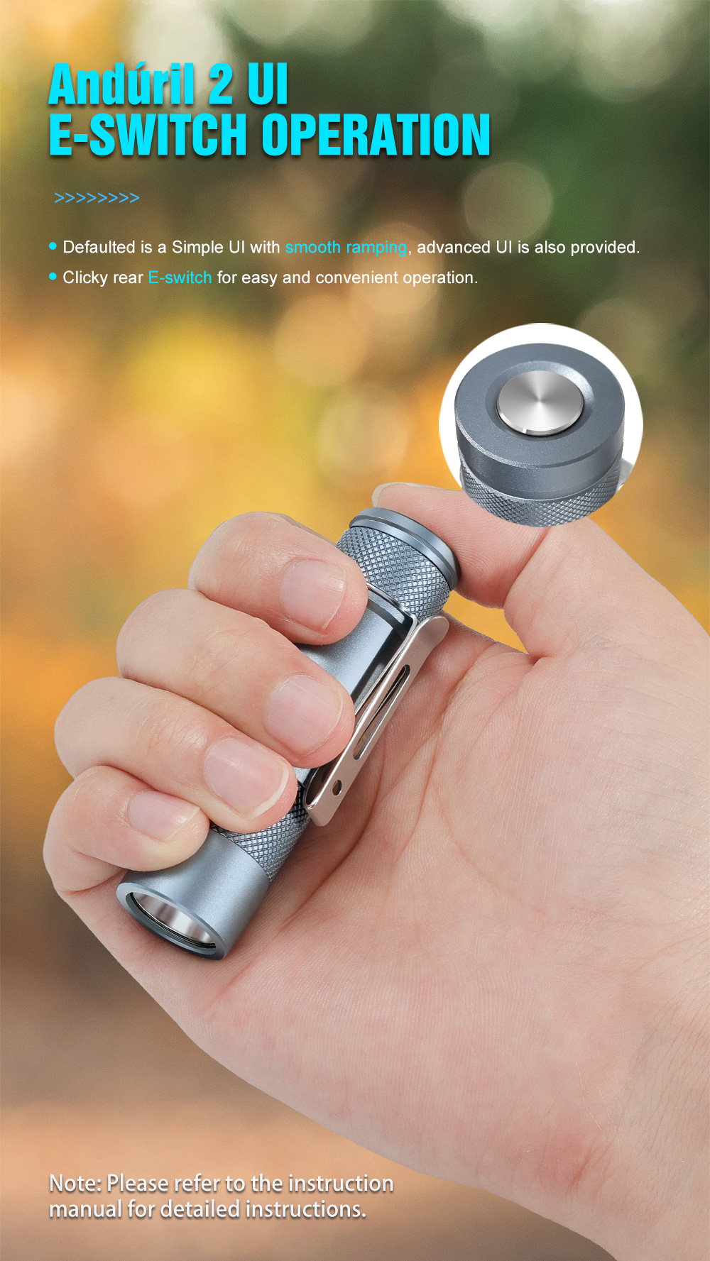 low light.Other functions: Battery check, sunset, beacon,