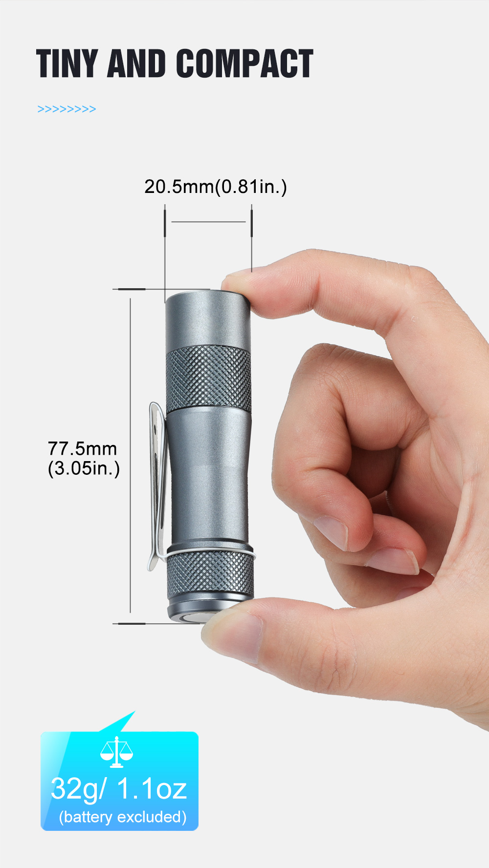 Weight: Approximately 32 g without cells(aluminum)