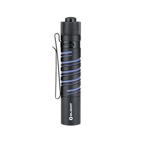 Introducing the Olight I5T! This single AA-flashlight will quickly become your preferred EDC with its compact body, exceptionally bright output, and single tail switch user-interface. Delivering a peak beam distance of 60 meters combined with a 300 lumen max output, the I5T is a must-have for around the house, outdoors, and everyday carry. Using a highly integrated tail switch, single-handed operation with the I5T is easy with quick mode shifting and momentary on abilities. This flashlight will stand out in your collection with a blue accented pocket clip and double helix knurling that provides a secure grip and stylish flair.